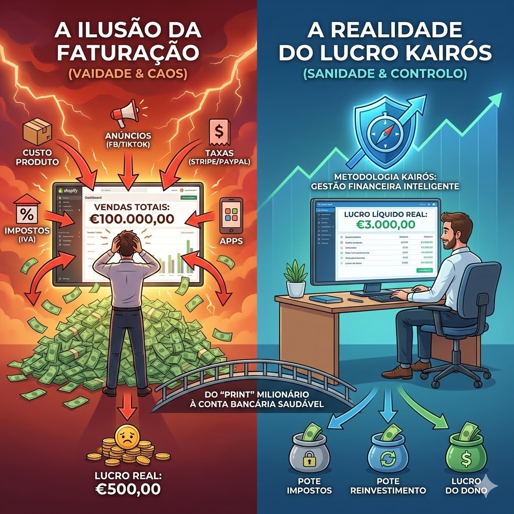 Em 2026, é fácil fazer um print do Shopify a mostrar 50.000€ em vendas num mês. O que ninguém te conta é a matemática por trás desse print: